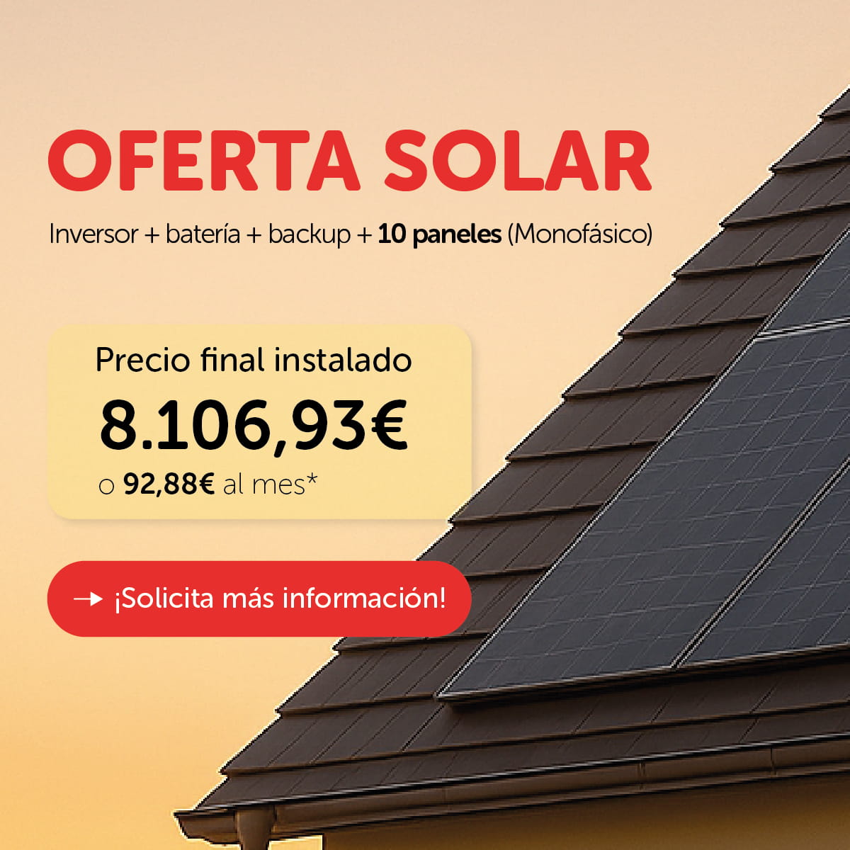 Como ocurre con cualquier proyecto importante de mejora del hogar, la instalación de placas solares en el tejado conlleva algunos costes iniciales. El precio medio suele oscilar entre los 4.000€ y los 10.000€ (o más), dependiendo del tamaño de tu casa y de la cantidad de paneles que necesites. Sin embargo, empezarás a ahorrar en tu factura energética desde el primer día.